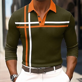 Pánské Proužky Waffle Polo košile Dlouhý rukáv Polo tričko Košile s límečkem Obchodní příležitostné Obchod Noste do práce Denní nošení Knoflíky Jaro Podzim Zima oranžová1 Oranžová 2 Oranžová