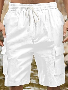 Pánské Kraťasy Lněné šortky Letní šortky Plážové šortky Šňůrky Elastický pas Multi kapsa Bez vzoru Pohodlné Prodyšné Délka kolen Venkovní Denní Plážové prázdniny Módní Černá Bílá