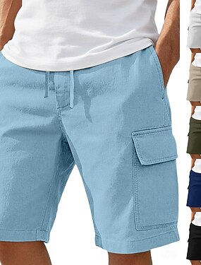 Pánské Šortky s kapsami Lněné šortky Letní šortky Plážové šortky Multi kapsa Straight-Leg Vícebalení Bez vzoru Pohodlné Prodyšné Délka kolen Ležérní Denní Dovolená prázdniny Módní Bílá + khaki Bíl