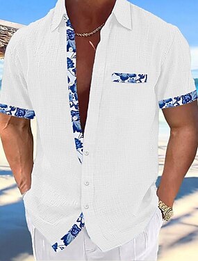 Pánské Košile Lněná košile Letní košile Oblečení na pláž Košile na knoflíky S lístky Dovolená Ležérní Bílá Vodní modrá Tmavomodrá Dlouhý rukáv Klopa Jaro léto Oblečení Slátanina