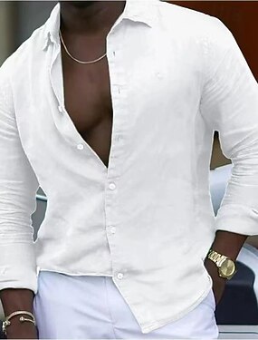 Pánské Košile Lněná košile Letní košile Košile pro volný čas Plážová košile Košile na knoflíky Bez vzoru Ležérní Dovolená Černá Bílá Světle zelená Světlá růžová Dlouhý rukáv Přehnutý Léto Jaro