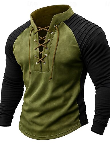 Pánské Tričko Dlouhý rukáv Stojáček Podzim Zima Jaro & podzim Barevné bloky Vinobraní Módní Denní Šňůrky Venkovní Ležérní Oblečení na atletiku Hnědá Šedá Zelená Top tričko pro muže