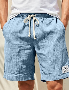 Pánské Kraťasy Lněné šortky Letní šortky Plážové šortky Neformální šortky Šňůrky Elastický pas Pevná barva Lehká váha Prodyšné Délka kolen Denní Venkovní Streetwear Módní Klasický styl Vodní modr
