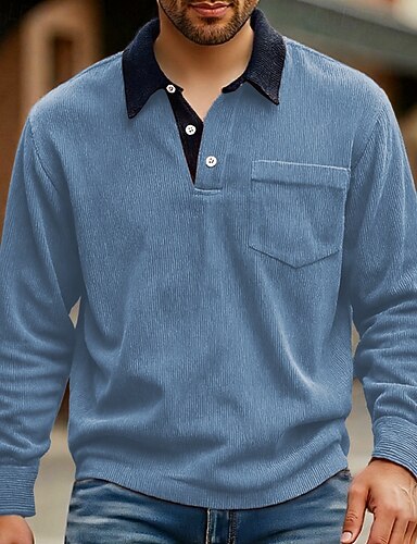 Pánské Kordurová košile Golfová košile Práce Ležérní Klopa Dlouhý rukáv Základní Moderní Barevné bloky Kapsy Knoflíky Jaro Podzim Běžný Černá Bílá Rubínově červená Námořnická modř Modrá Oranžová