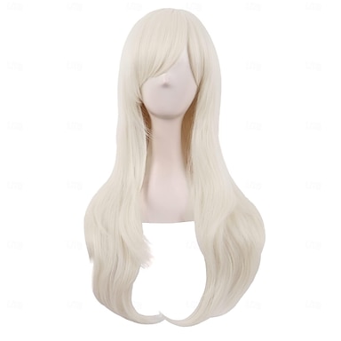 bílé paruky s ofinou pro ženy dlouhá vlnitá syntetická paruka barevná paruka z vlasů tepelně odolné paruky pro cosplay party
