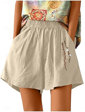 Dámské Imitace bavlny a lnu Kraťasy Letní šortky Plážové šortky prázdniny Módní Základní Krátký Středně vysoký pas Bez vzoru Kapsy Elastický pas Široké nohavice Pohodlné Venkovní Lehce elastické