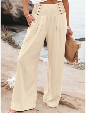 Dámské Imitace bavlny a lnu Široké nohavice Kalhoty Letní kalhoty Na běžné nošení Plná délka Přírodní Bez vzoru Kapsy Pohodlný Venkovní ulice Jdeme ven Meruňková Námořnická modř Černá Fuchsiová Léto