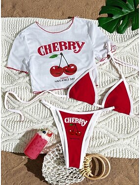 Dámské Plavky Bikiny Tři kusy Tanga Plavky Štíhlý Volná záda prázdniny Oblečení na pláž Písmeno Kulatý Bez rukávů Krátké rukávy Plavky