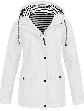 Dámské Trenčkot Nepromokavé bundy a pláště do deště Voděodolný Větruvzdorné Zip Kapsy Módní Venkovní Bez vzoru Jdeme ven Víkend Zip Standardní Kapuce Běžný Dlouhý rukáv Svrchní oděvy Černá Bíl