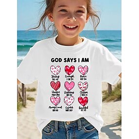 100% bavlna Děti Dívčí Bílá Světlá růžová Srdce Tričko Košilky Tričkový Krátký rukáv Venkovní Dovolená Denní Klasické Na běžné nošení Tisk Léto