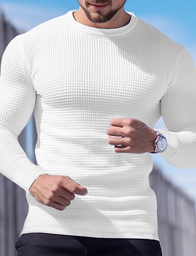 Pánské Wafflová košile Tričko Tričko Top Tričko s dlouhým rukávem Dlouhý rukáv Tričkový Jaro & podzim Bez vzoru Módní Designové Základní Dovolená ulice Jdeme ven Černá Bílá Fialová Top tričko pro muže