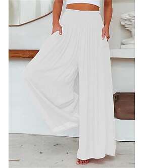 Dámské Široké nohavice Kalhoty prázdniny Šik ven Lehký Plná délka Vysoký pas Bez vzoru Elastický pas Vysoký střih Prodyšnost Pohodlné Lehce elastické Venkovní Dovolená Denní nošení Černá Bílá Růžov