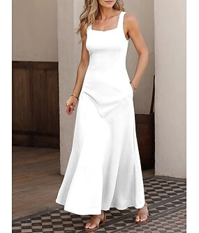 Dámské Maxi šaty Áčkové šaty Letní šaty Šaty na rameno prázdniny Na běžné nošení Párty Rande Běžný Pevná barva Grafika Bez rukávů Hranatý Černá Bílá Světlá růžová Šedá Léto Jaro