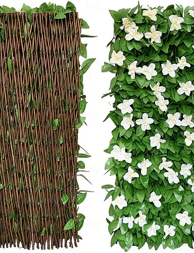Rozšiřitelný umělý plot z břečťanu a orchidejí s realistickými zelenými listy, odolný dřevoplastový materiál, bezúdržbová venkovní zahradní dekorace, ideální na terasu, balkon, dvůr