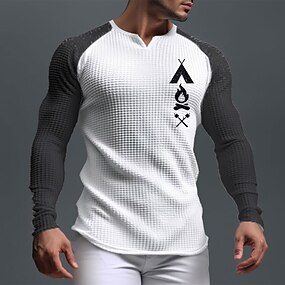 Pánské Grafika Vlastnosti Tričko Raglánové tričko Waffle Tričko Dlouhý rukáv tričko 3D tisk Do V Košile Denní Klasické Venkovní Outdoorové sporty Ležérní Jdeme ven Bílá Hnědá Tmavomodrá Jaro & podzim