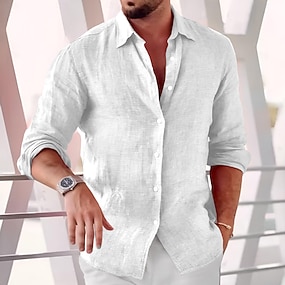 Pánské Košile Lněná košile Letní košile Oblečení na pláž Košile na knoflíky Bez vzoru Dovolená Denní Bílá Světlá růžová Námořnická modř Vodní modrá Dlouhý rukáv Přehnutý Léto Jaro léto Oblečení