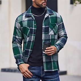 Pánské Košile Flanelová košile Overshirt Pléd Venkovní ulice Černá Rubínově červená Oranžová Hnědá Dlouhý rukáv Zima Jaro & podzim Oblečení