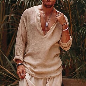 Pánské plátěná košile Vikingský styl Letní košile Oblečení na pláž Košile pro volný čas Bez vzoru Dovolená Curise Bílá Zelená Dlouhý rukáv Do V Jaro léto Oblečení