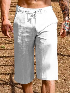 Pánské Capri kalhoty Lněné šortky Letní šortky Plážové šortky Šňůrky Elastický pas Bez vzoru Pohodlné Prodyšné Telecí délka Venkovní Denní Plážové prázdniny Módní Černá Bílá