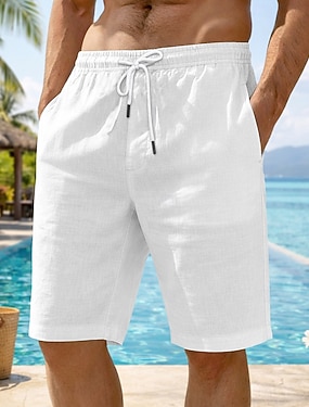 Pánské Lněné šortky Letní šortky Plážové šortky Šňůrky Elastický pas Straight-Leg Bez vzoru Pohodlné Yumuşak Délka kolen Denní Plážové Módní Elegantní & moderní Černá Bílá Neelastické