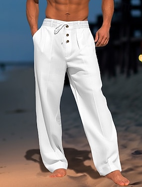 Pánské Plátěné kalhoty Kalhoty Letní kalhoty Plážové kalhoty Šňůrky Boční tlačítko Straight-Leg Bez vzoru Pohodlné Prodyšné Plná délka Ležérní Denní Dovolená Módní Klasický styl Černá Bílá