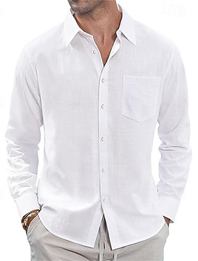 45% len Kapsy Pánské plátěná košile Košile Košile na knoflíky Letní košile Černá Bílá Vodní modrá Dlouhý rukáv Bez vzoru Klopa Jaro & podzim Venkovní Denní Oblečení