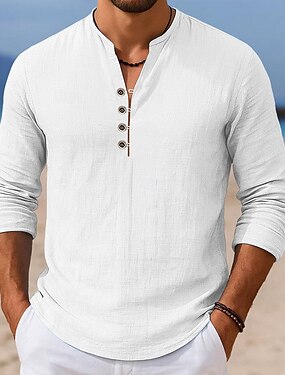 Pánské Košile Lněná košile Letní košile Plážová košile Pevná barva Dovolená Ležérní Černá Bílá Trávová zelená Světle modrá Dlouhý rukáv Henley Podzim Jaro léto Oblečení