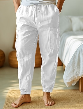 Pánské Plátěné kalhoty Nákladní běžci Kalhoty Letní kalhoty Plážové kalhoty Šňůrky Elastický pas Multi kapsa Bez vzoru Pohodlné Prodyšné Ležérní Denní Dovolená Módní Klasický styl Černá Bílá