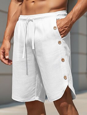 Pánské Kraťasy Lněné šortky Letní šortky Plážové šortky Neformální šortky Šňůrky Elastický pas Knoflíky Bez vzoru Pohodlné Prodyšné Krátký Denní Venkovní Plážové prázdniny Módní Černá Bílá Neelastické