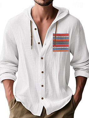 Pánské Košile Lněná košile Oblečení na pláž Košile na knoflíky Košile s kapucí Bez vzoru Dovolená Ležérní Černá Bílá Trávová zelená Khaki Dlouhý rukáv Kapuce Jaro léto Oblečení Knoflíky