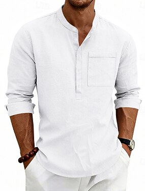 Pánské Lněná košile Popover košile Košile pro volný čas Plážová košile Košile s páskovým límečkem Bez vzoru Ležérní Streetwear Černá Bílá Růžová Nebeská modř Dlouhý rukáv Henley Jaro léto Léto