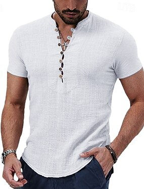Pánské Košile plátěná košile Bavlněná lněná košile Čínská košile s límečkem Košile s mandarinkovým límečkem Letní košile Bez vzoru Dovolená Ležérní Černá Bílá Námořnická modř Vodní modrá Krátký rukáv