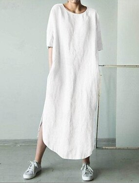 Dámské Maxi šaty Imitace bavlny a lnu Úpletové šaty Kaftanové šaty Volnočasové šaty Módní Moderní Denní Dovolená Jdeme ven Volný Bez vzoru Dlouhý rukáv Tričkový Bílá Léto Jaro Podzim
