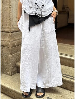 Dámské Imitace bavlny a lnu Široké nohavice Kalhoty Kalhoty pro volný čas prázdniny Módní Šik ven Plná délka Vysoký pas Bez vzoru Kapsy Elastický pas Pohodlné Neelastické Denní Dovolená ulice Bíl