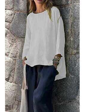 Dámské Halenka Košile z imitace lnu Pevná barva Vinobraní stylové Na běžné nošení Dlouhý rukáv Do V Běžné topy Denní Vodní modrá Bílá Světlá růžová Trávová zelená Jaro Podzim