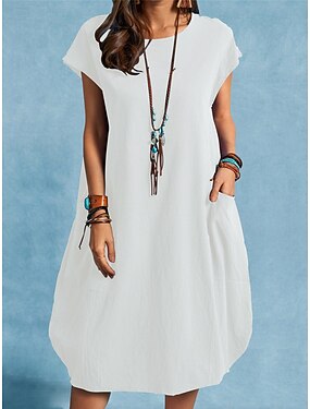 Dámské Midi šaty Imitace bavlny a lnu Úpletové šaty Košilové šaty Bílé šaty Základní Moderní Denní Víkend Volný Bez vzoru Poloviční rukáv Tričkový Bílá Léto Jaro