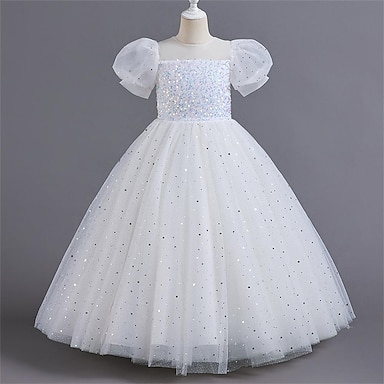 Šaty pro květinovou družičku Dívčí Šaty na párty Výkon Svatební Párty Princeznovské Sladký Síťka Pevná barva Bez rukávů Pod rameny Bílá 2-12 let