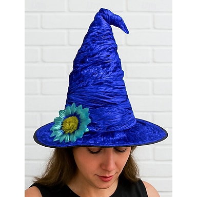 Dámský halloweenský čarodějnický klobouk – skládací barevný špičatý klobouk s květinovou výzdobou na kostýmní párty, cosplay a festivalové outfity