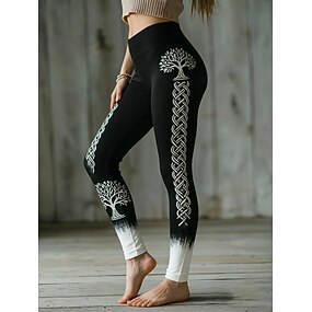 Dámské Viking Legíny Pohodlné legíny prázdniny Vinobraní Etnický styl Plná délka Vysoký pas Grafika Strom Potisk Pohodlné Elastické Ležérní Denní Dovolená Černá Jaro Podzim Slim