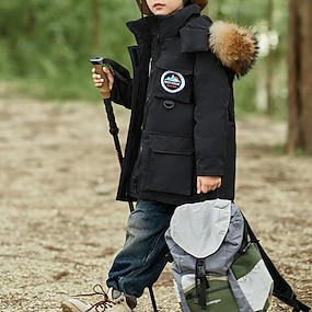 Děti Chlapecké Péřová bunda Venkovní bunda Svrchní oděvy Barevné bloky Dlouhý rukáv Kapsy Zahřívací Větruodolné Kabát Venkovní Denní Základní Vodní modrá Černá Rubínově červená Zima 6 let +