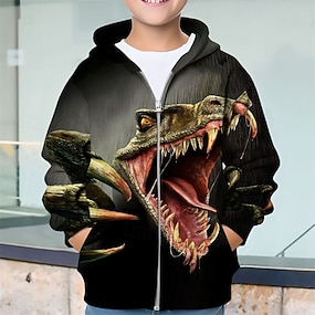 Chlapecké 3D Dinosaurus Kapuce Kabát Svrchní oblečení Dlouhý rukáv Jaro Podzim Šik ven Sport Děti 4-12 let Zip ulice Denní Běžný