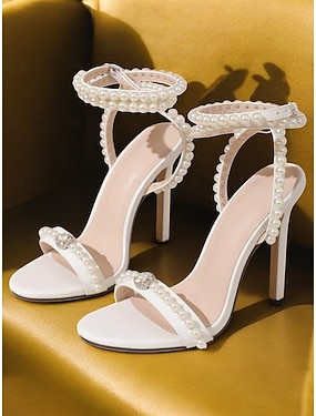 perleťově zdobené svatební sandály na jehlovém podpatku pro ženy – elegantní svatební boty s otevřenou špičkou a páskem ke kotníkům