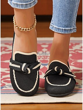 Dámské široké flyknit loafers s uzlovou mašlí – pohodlné ploché boty pro každodenní nošení a cestování