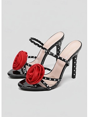 Dámské puntíkované jehlové sandály s červenou růží, páskové boty na vysokém podpatku s otevřenou špičkou na koktejlové večírky, noční život a rande