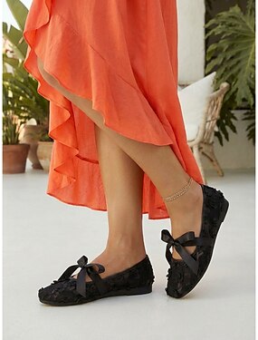 Dámské růžové krajkové květinové balerínky - romantické síťované boty Mary Jane s mašlí do venkovních resortů, na zahradní párty &letní prázdniny
