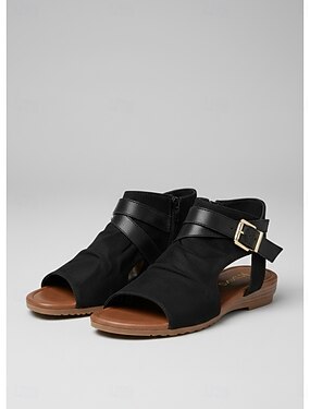 Dámské sandály z umělé semiše s otevřenou špičkou a zadním zipem – ležérní elegantní styl, měkký a pohodlný střih na chůzi, cestování, víkend, zahradu i každodenní nošení