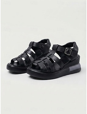 Dámské černé gladiátorské sandály na platformě – nastavitelný pásek, římský styl, lehká klínová podrážka, pohodlné letní boty na chůzi a cestování &denní nošení