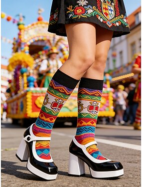 Fialové platformové podpatky s bílými akcenty pro ženy Mardi Gras - retro karnevalový styl perfektní pro slavnostní průvody a akce