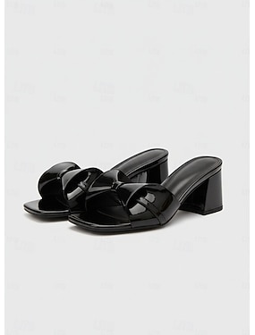 Dámské bílé sandály s mašlí na blokovém podpatku - elegantní minimalistické společenské boty na letní outfity, večírky, cestování po městě &denní nošení