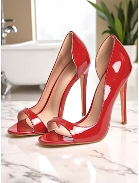 červené lakované sandály na platformě pro ženy - noční párty na jehlovém podpatku